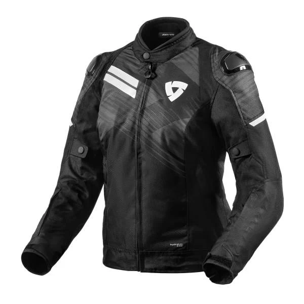 Een waterdichte, sportieve jas voor droge straatmotorrijdsters in de regen. De Apex H2O Ladies jas heeft zijn eigen flair en krachtige uitstraling, vooral doordat deze de stoere graphics van de complete Apex designserie overneemt, een kledinglijn die uiteenloopt van een raceklaar eendelig circuitpak tot een urban leren motorjas. Daarbij is deze motorjas gesneden volgens patronen die specifiek op het vrouwenlichaam zijn geschreven. Waterdichtheid heeft de Apex H2O Ladies te danken aan een vaste hydratex-Mesh G-liner constructie. Nu in klare taal: water blijft buiten, jij blijft droog en tevreden. Zo simpel is het. Natuurlijk, ook wij weten dat er niet al teveel lol te beleven valt aan (de voorbereidingen voor) een motorrit in de regen, maar we kunnen het je wel mogelijk, en zelfs aangenaam maken. Om te vermijden dat koude rijwind je lichaam bereikt, hebben we een windvanger achter de voorrits aangebracht. En door de toepassing van een uitneembare thermovoering geven we de Apex H2O Ladies motorjas nog meer multifunctionaliteit door de seizoenen heen. Om het plaatje te completeren, maken de stoere graphics over de borst, bovenrug en schouders een stevig statement. Een statement dat van zich af schreeuwt: ‘Ik rijd gewoon door in de regen en zie er nog goed en zichtbaar uit ook!’ Dus blijf droog bij al jouw trips met de Apex H2O Ladies motorjas.